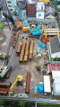 • 穴に水があるだけで施行ミスと錯誤させる書込みって拙いんじゃないかな?緑の四角い箱は明らかに泥水槽だし、なら穴は杭打ち後に崩れない為の人工泥水って事だと推測出来る。トレミー管に打設用のコンクリート入れる際に底じゃなくてある程度上から入れちゃって人工泥水と混ざって強度が落ちたから引き抜いた残骸。なので孔が崩れない用に人工泥水で充たしてる。この後は再度トレミー管入れて杭打ち工事するってだけ