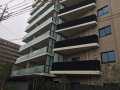 - エントランス抜けてすぐのエレベーターまで行く導線は、塀はありますが、台風のときなど大丈夫かな?と思いました。奥のエレベーターは、中庭抜けたほうが早く乗れますね。中庭の池の水は、浄化して流すのでボウフラ等は大丈夫だと思います、とのことでした。維持費はちょっと心配ですが、景観や憩いの場として綺麗だなと思いました。
