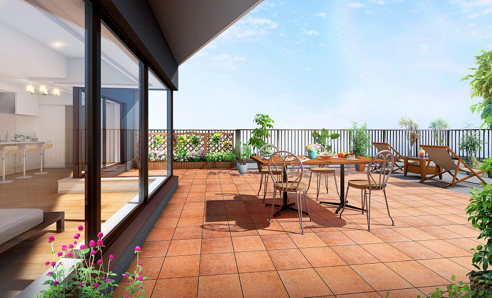 クオス港北ニュータウン ステーションヴィラ ルーフバルコニー完成予想CG2.png