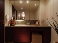 - 洗面化粧室は引き戸タイプで三面鏡が標準装備