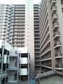 • 駐車場・非常階段の銀色の柱が西日に反射して変に目立つ。