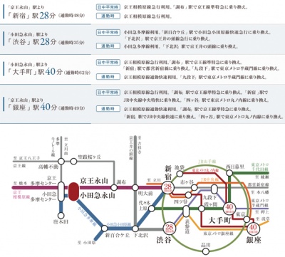 | − | + | *「新宿」駅へ28分。「渋谷」駅も28分。急行停車2駅2路線が利用可能で、都心アクセスもスピーディー。 | |