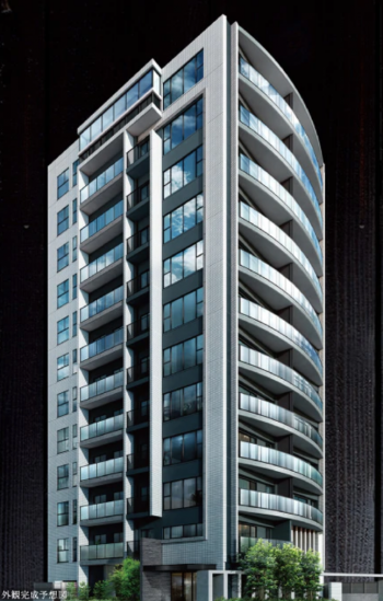 - 12階建で43戸だとすれば、ワンフロアに3~4戸が配置されるのだと思いますが、角住戸率100%となるとどのような形になるのでしょう。公式サイトでは外観が公開されていますが、全体像はピザをカットしたような三角形になるのかしら。まだ想像がつきませんね。